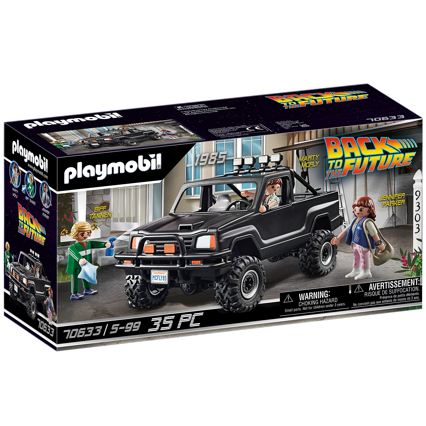 Tras la versión clickera del mítico DeLorean DMC-12, Playmobil amplía su línea de la saga de Regreso al Futuro con varias referencias más como el Pick-up de Marty McFly. Un set que incluye las figuras de Marty, Jennifer y Biff Tannen en chándal.