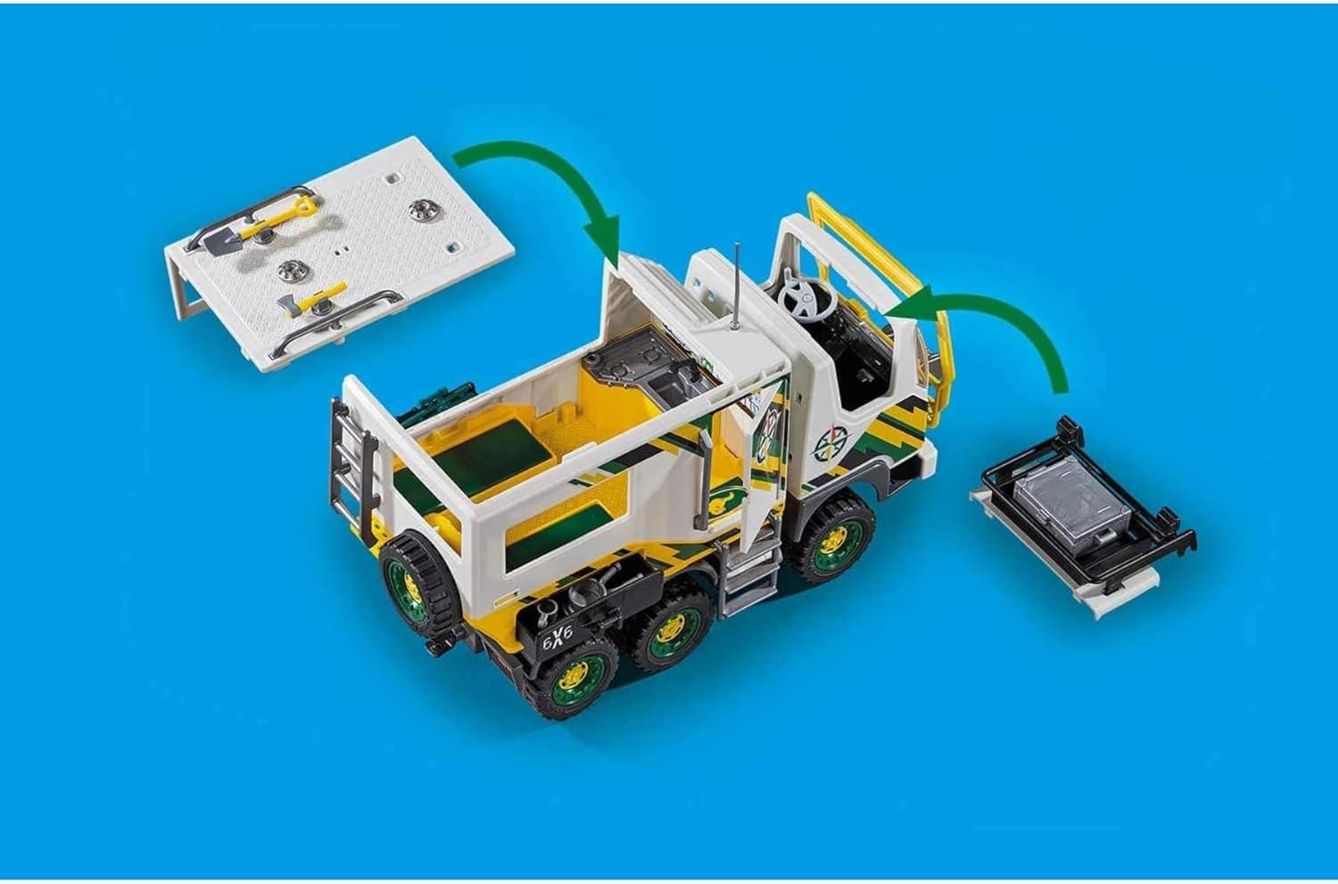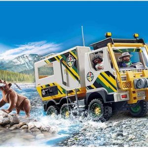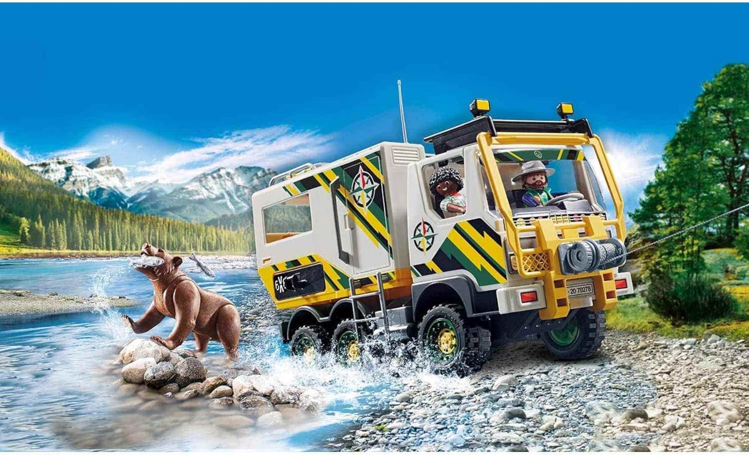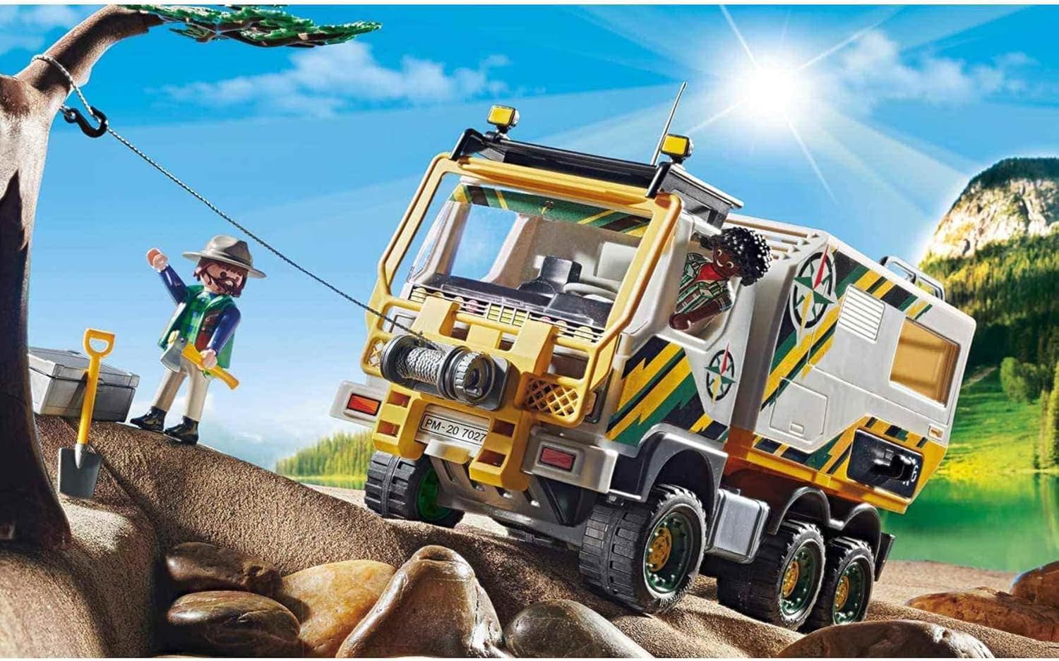 Incluye: 1 figura Playmobil adulto investigador, 1 figura Playmobil joven investigador, 1 camión de aventuras con espacio en la cabina para dos figuras, gancho, 6 ruedas y muchos más detalles, 1 figura oso, 1 cámara de fotos con trípode, 1 lanzador de calmantes, 1pala, 2 peces, 1 hacha y muchos más accesorios de juego.