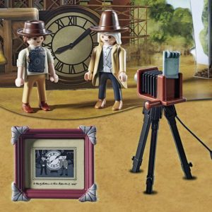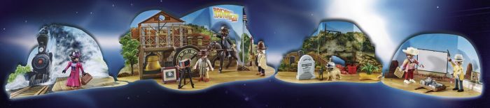 Tras el lanzamiento por parte de PLAYMOBIL del mítico DeLorean y el pack de figuras de 1955, y las dos referencias de mayo de 2021 (Camioneta Pick-up de Marty McFly y la Persecución en Aeropatín), la marca dedica una tercera y última caja centrada totalmente en la tercera parte de la saga de Regreso al Futuro, ambientada mayoritariamente en el Oeste.