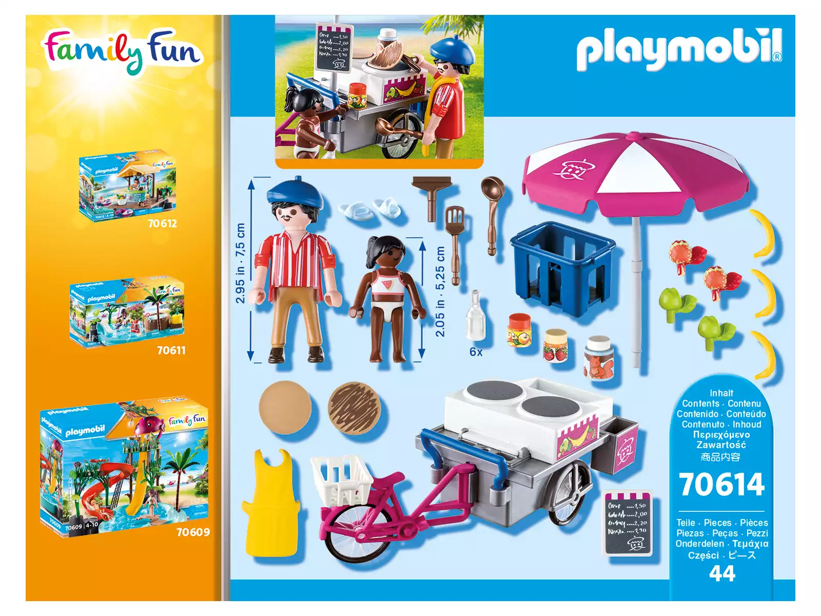 ¡Un gran día en el parque acuático requiere momentos para la merienda y reponer energías! ¡Llévate este nuevo Playmobil Carrito de Crepes!
