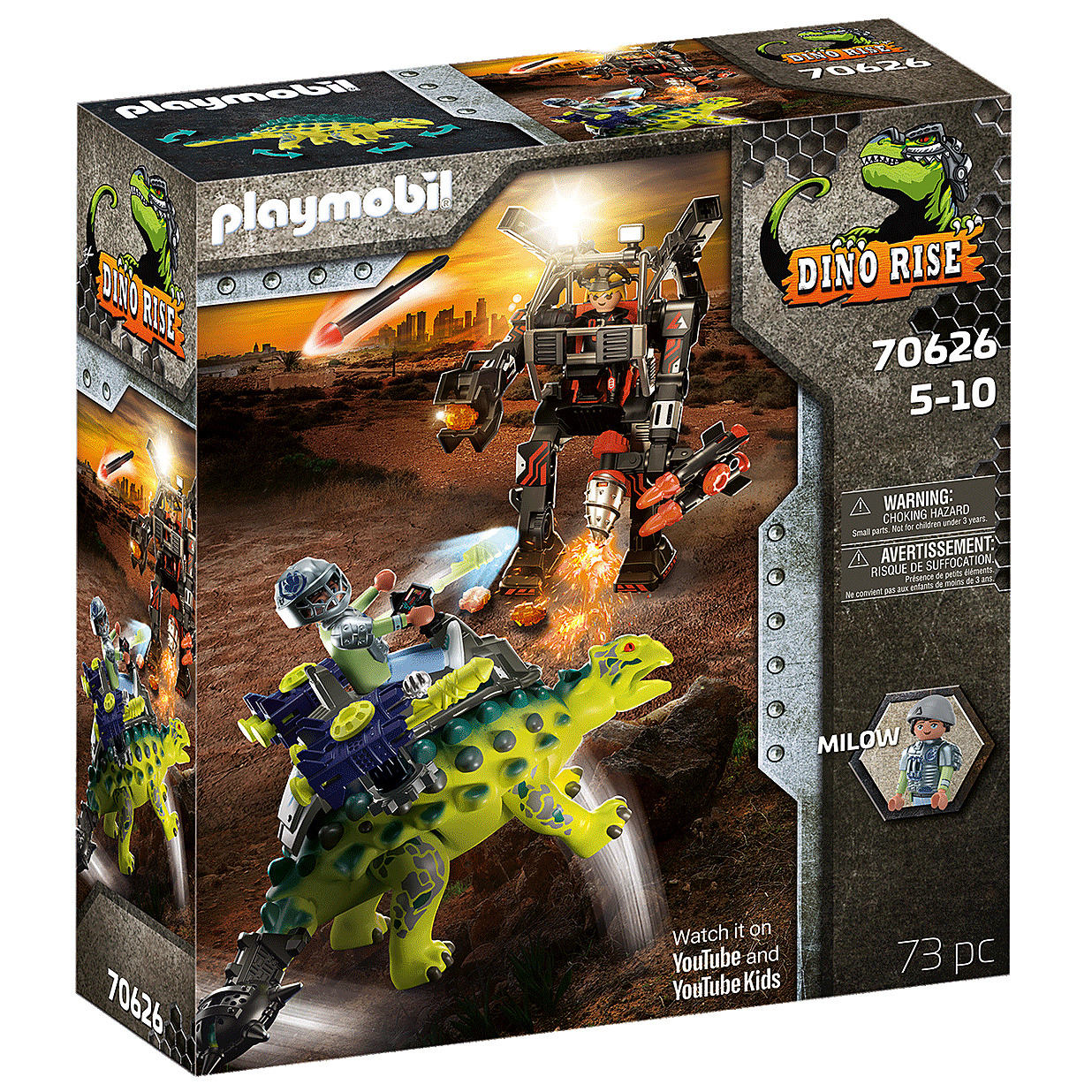 El villano ataca con su hipermoderno robot de combate. Los cañones son rápidos como el rayo, hacen que el robot sea extremadamente peligroso y difícil de detener. Pero, afortunadamente, el valiente equipo que rodea a Ian se ha propuesto luchar contra los desalmados robots de la Corporación Comet con todos los medios a su alcance. A lomos de su Saichania, el astuto Milow intenta frustrar los planes de la máquina de combate. Este equipo de poder dino-humano es difícil de vencer.