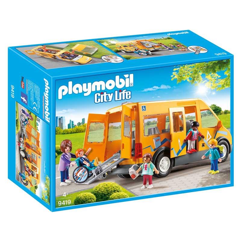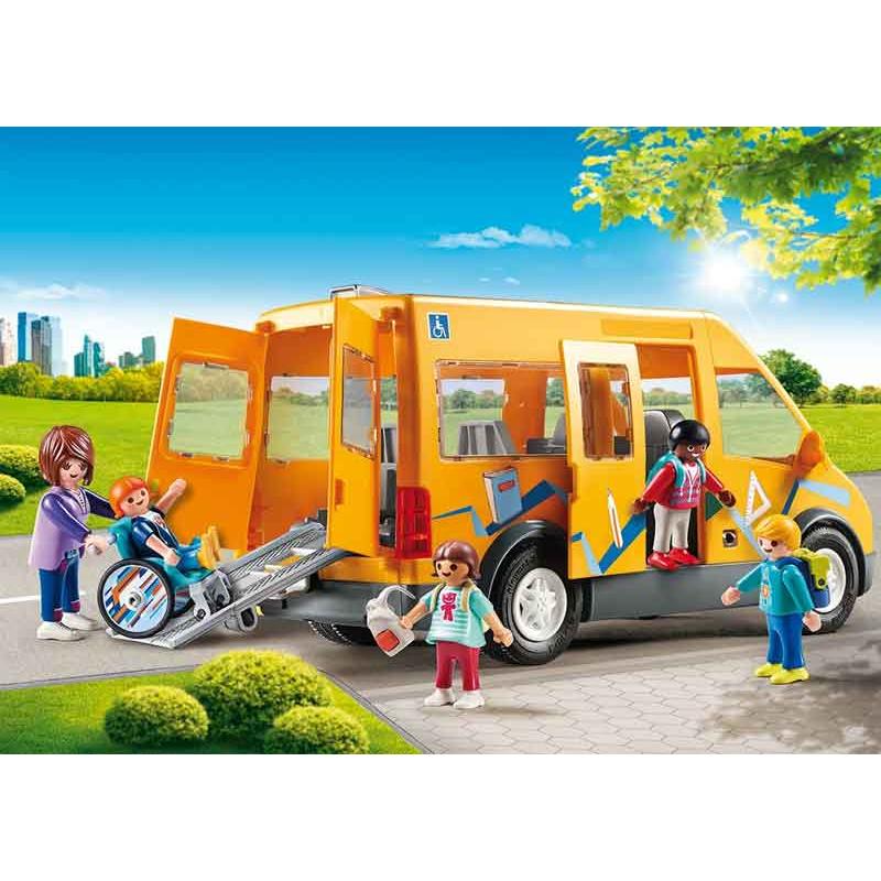 Autobús escolar con zona adaptada y  rampa de acceso para silla de ruedas.